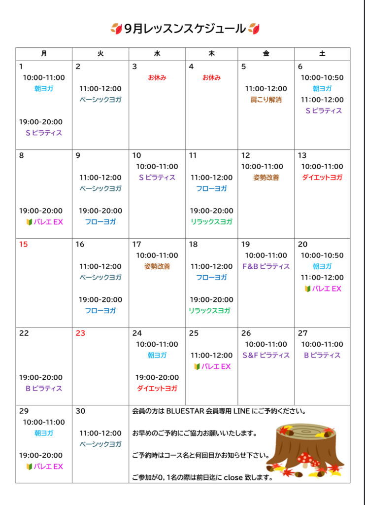 ヨガやピラティスの8名迄の一般クラスはBLUESTARです。